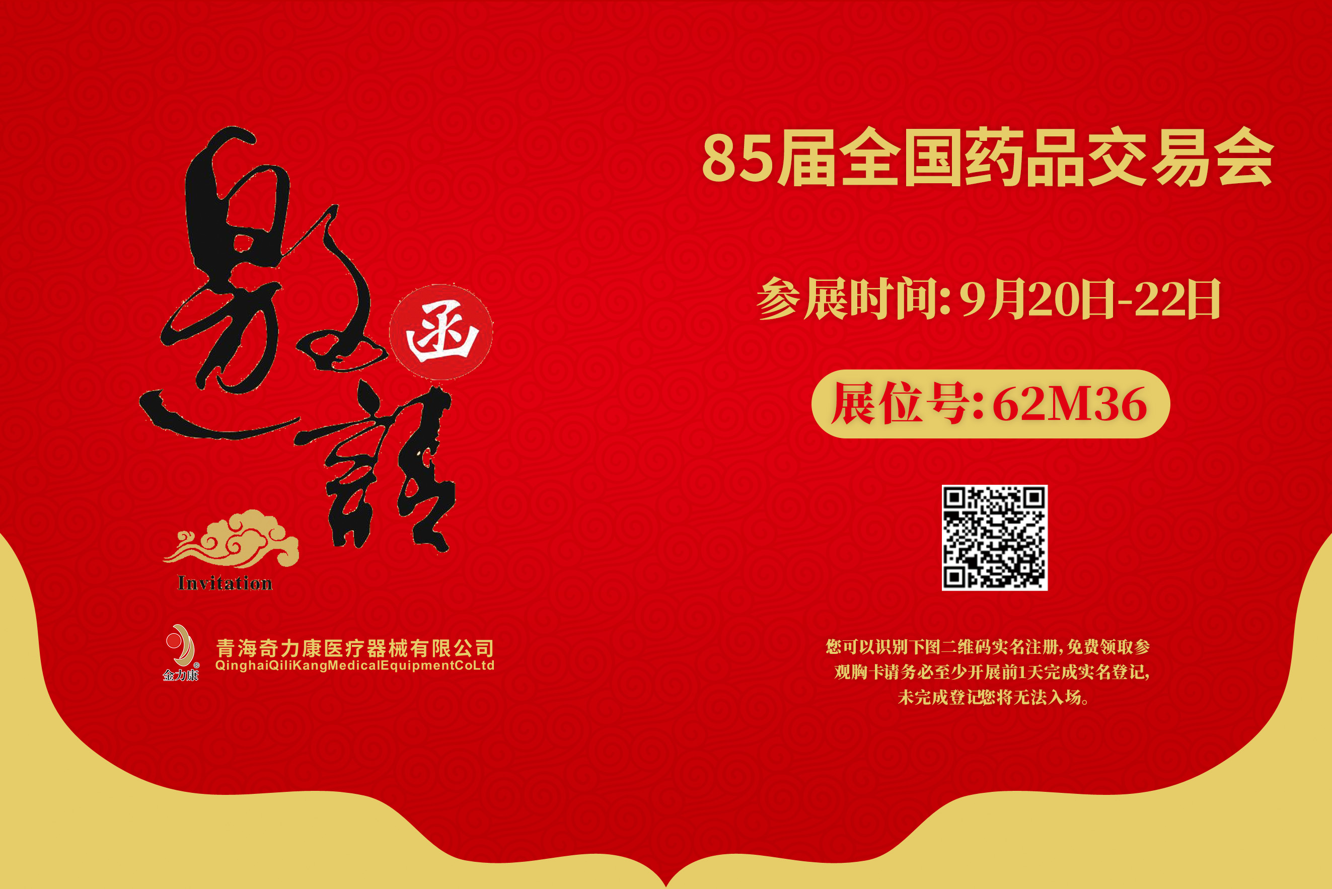 感謝您長(zhǎng)期以來(lái)對(duì)青海奇力康醫(yī)療器械有限公司的關(guān)注與支持,這次85屆全國(guó)藥品交易會(huì)我司將于2022年9月20日-22日在上海國(guó)家會(huì)展中心參展,展位號(hào):62M36,青海奇力康在此向您發(fā)出誠(chéng)摯邀請(qǐng),真誠(chéng)期待您的參觀!