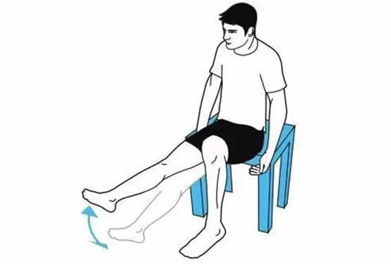 坐在床沿前或椅子上,背伸直,雙腿并攏。慢慢抬高一只小腿至水平位置,保持股四頭肌緊繃,停留15~20秒鐘,然后歸位。換另一只腿重復以上動作,兩腿交替進行。