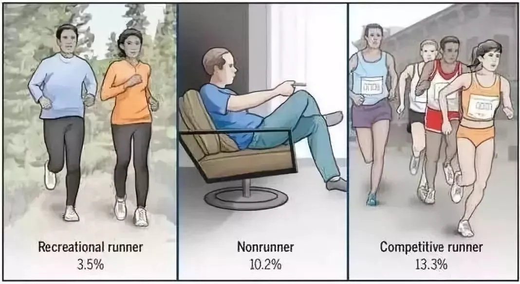 美國《骨科與運(yùn)動物理治療雜志》還指出,健身跑步者的關(guān)節(jié)炎發(fā)生率為3.5%,而久坐不動的人患關(guān)節(jié)炎的概率為10.2%!